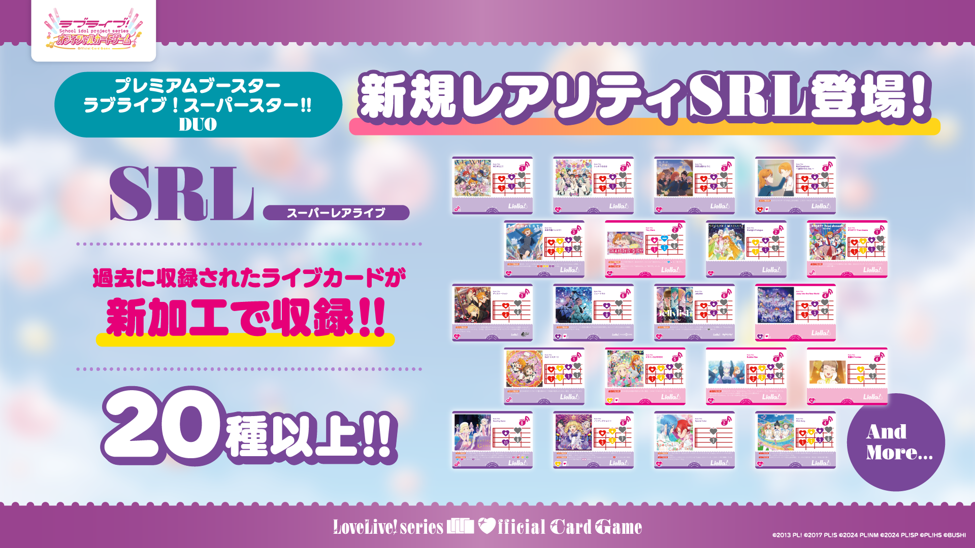 ♦SRL(スーパーレアライブ)・・・前回プレミアムブースターの「SRE(スーパーレアエネルギー)」に代わって既存のライブカードが新加工になった「SRL」を20種以上収録!
